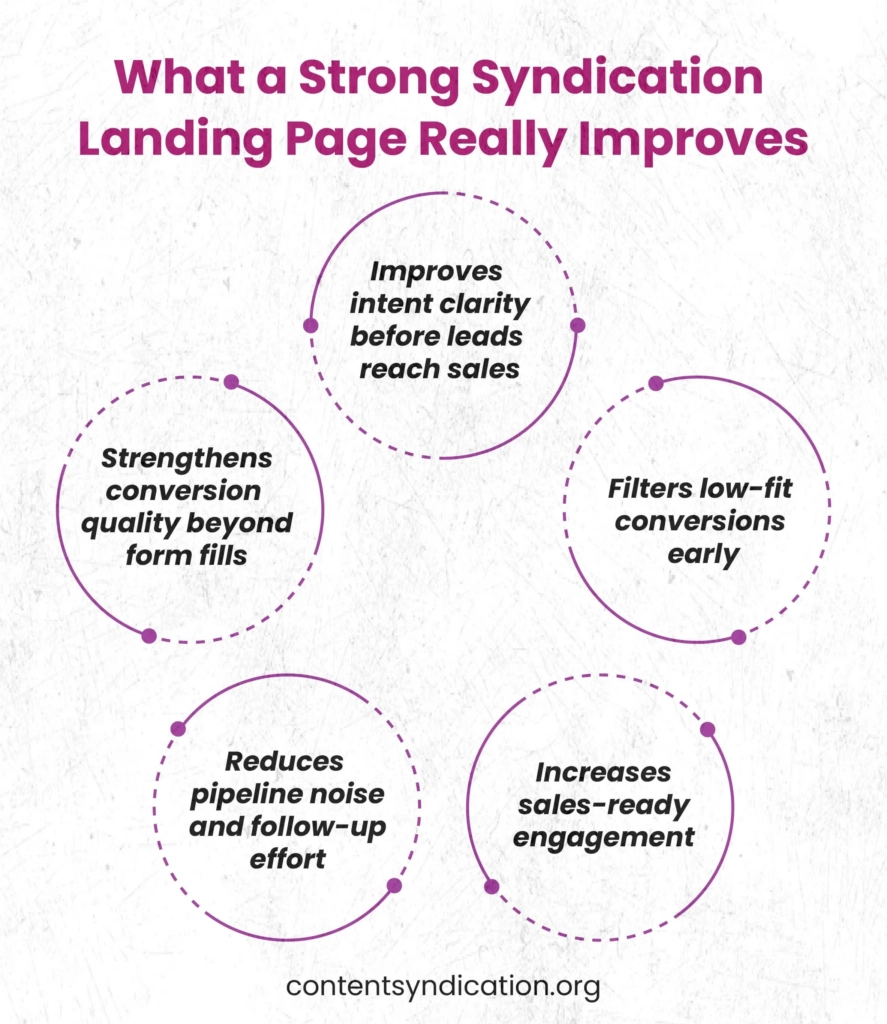 This distinction is central to content syndication landing page vs website landing page performance. Website pages invite exploration. Syndication pages validate fit and set expectations. When teams blur this line, lead quality suffers.